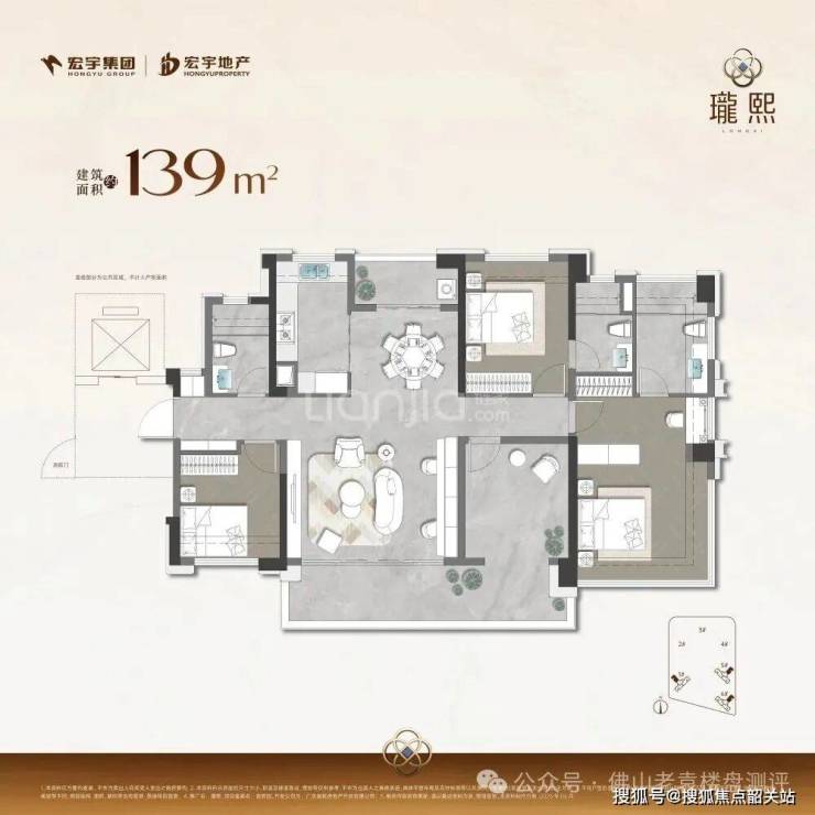 在产品力的核心——户型设计上,宏宇瓏熙充分运用了佛山最新出台的建筑规范,实现了空间利用率的革命性突破。项目主打纯改善定位,无刚需小户型,起步户型即为139平方米的四房两厅两卫。