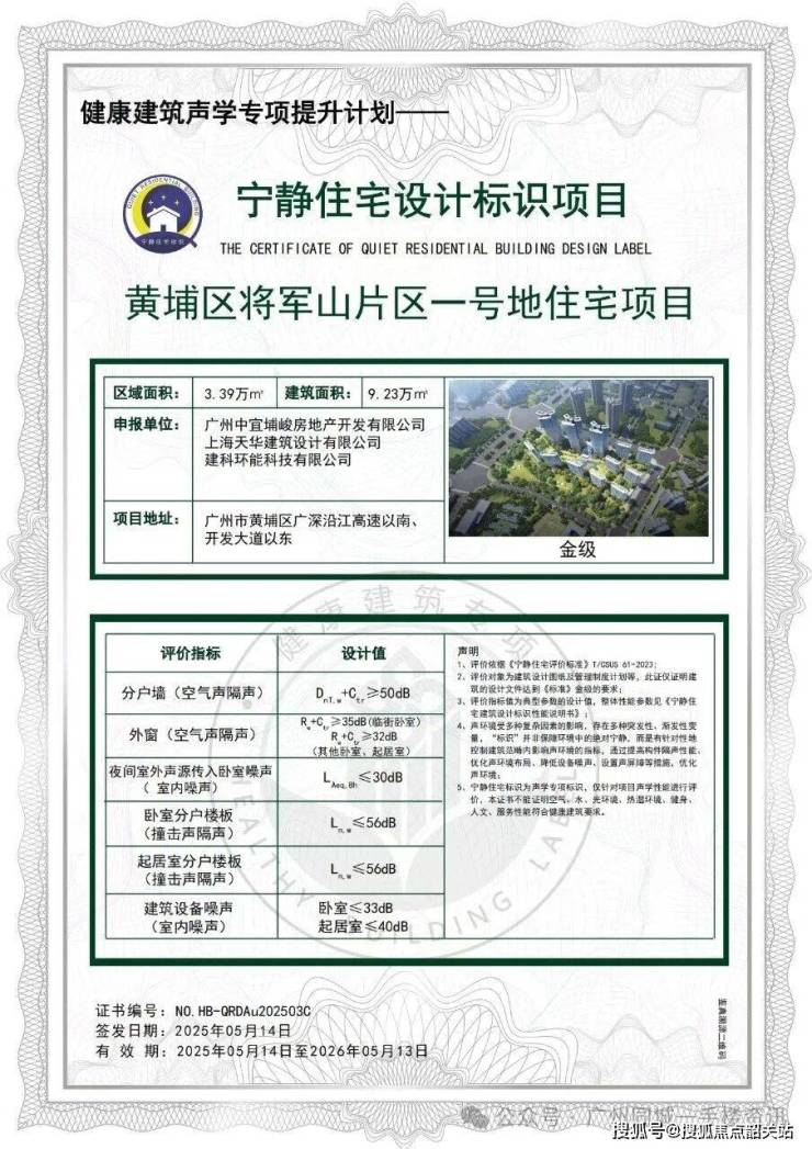 项目荣获中国城市科学研究会颁发的宁静住宅设计标识项目金奖!当城市噪音污染越来越难以隔绝的当下,黄埔未来城以五重静音系统构筑声学堡垒,打造广州罕见的"零分贝"住区,让静谧成为最奢侈的标配。
