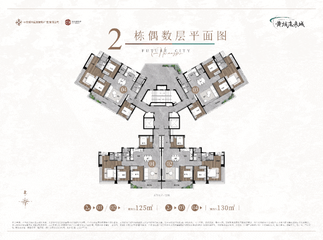相比首开的1、4栋,2、5栋更靠近内侧,整体隐私性更强,2栋为2梯4户的塔楼设计,主推建面约125平、130平两个户型,对望中央园林。