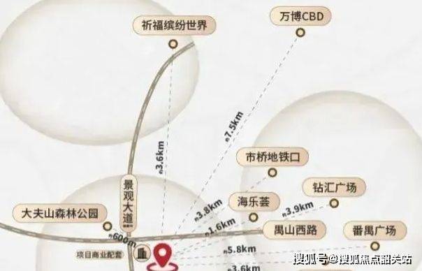 商业配套完善,项目自带商业街,满足业主日常生活所需,提供便捷的购物体验。在 3.5 公里范围内,海乐荟购物中心、市桥易发商业街、奥园广场、西丽广场、钻汇广场、祈福缤纷汇等多个商圈环绕,集购物、娱乐、餐饮于一体,丰富了业主的休闲生活。医疗配套也十分充足,周边有广州中医院大学祈福医院、番禺区中医院何贤医院沙湾院区、番禺区中心医院、市桥医院等医疗机构,为业主及家人的健康提供全方位保障。项目周边自然景观资源得天独厚,西北侧直线距离约 1000 米就是约 9000 亩国际级大夫山森林公园,2 公里范围内还有约 7290 亩滴水岩森林公园和约 366 亩莲湖湿地公园,三公园环绕,为业主营造出生态宜居的生活环境。