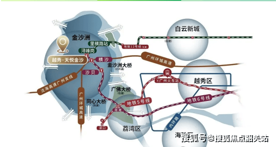 金沙洲板块地处白云区西部,紧邻荔湾区,是连接广州与佛山的重要枢纽区域,素有“广佛后花园”之称。早年的金沙洲因交通不便、配套匮乏,发展相对滞后,一度被贴上“睡城”的标签。