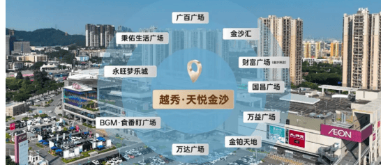 商业配套方面,越秀天悦金沙周边商业氛围浓厚,生活购物十分便捷。项目约500米即达永旺商圈,周边拥有10个超3万㎡以上规模的商业体,包括金铂天地、永旺梦乐城、万达广场、广百广场、永润广场、沙田中心等。丰富的商业配套涵盖购物、餐饮、娱乐、休闲等多种业态,能够满足业主日常的各类生活需求,在家门口就能享受一站式购物娱乐体验。