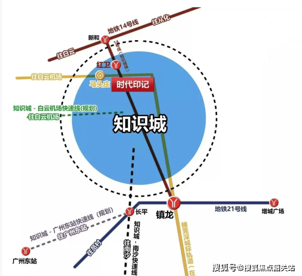 时代印记坐落于广州黄埔知识城,占据着极为关键的地理位置,位于黄埔区14号支线红卫站口,真正实现了地铁上盖的便捷交通。三条地铁线环绕周边,其中14号支线优势显著,一站可到白云新和,乘坐快线2站便能抵达嘉禾望岗,极大地缩短了与白云区域的时空距离。21号线则畅达天河员村,让居民无缝对接城市核心区域,满足日常通勤、休闲娱乐等多样需求。此外,穗莞深 - 新白广城轨为项目增色不少,它北接白云机场,南联深圳机场,还接驳虎门高铁站。从项目旁马头庄出发,约10分钟可到白云机场,约30分钟能到东莞,约40分钟抵达深圳,拓展了居民的出行范围,加强了与周边城市的联系。不仅如此,规划中的高速地铁更令人期待,马头庄将打造集高铁、地铁、城轨为一体的超大型TOD。建成后,知识城预计约15分钟至广州东站,约12分钟到达南沙港,约10分钟至白云机场,交通便利性将得到质的飞跃。同时,花莞高速、广河高速等多条高速交织成网,可快速通达粤港澳城市群,为居民的跨区域出行提供了更多选择。如此优越的交通条件,使时代印记在区域内脱颖而出,无论是日常出行还是商务、旅游出行,都能轻松应对,为居民的生活带来极大便利。