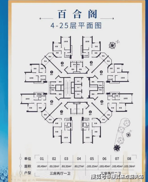 明珠花园占地面积适中,建筑外观别具一格,社区内绿化率高,环境优美。项目由多栋高层住宅组成,总户数众多,每栋楼的梯户比为8户“米”字型布局,户户分隔,保证了居住的私密性和舒适度。