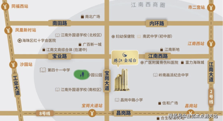 珠江·金瑶台坐落于江南西板块,宝岗大道与江南大道、工业大道三条主干道交汇处,交通网络四通八达。项目所在区域经济活跃,商业配套成熟,是海珠区核心价值高地。周边江南西商业区核心,1公里内汇集六大商业中心,为业主提供便利购物和休闲选择。随着海珠区城市更新及核心板块发展,江南西板块的地段价值持续上升。选择珠江·金瑶台不仅能够享受现成的生活便利,还可预见未来城市增值潜力,实现居住与投资价值双赢。