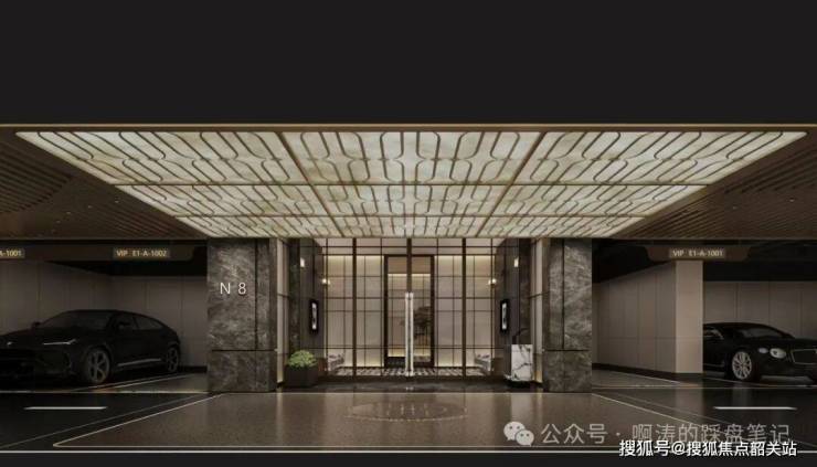 车库入口配置星空穹顶,搭配奢华型迎宾背景墙,内部打造铝格栅吊顶、透光云石穹顶、仿石漆天花、高品质金刚砂+地坪漆双重工艺等豪奢配置。穿越奢华的归家路,际遇层峯的尊崇归家礼序。