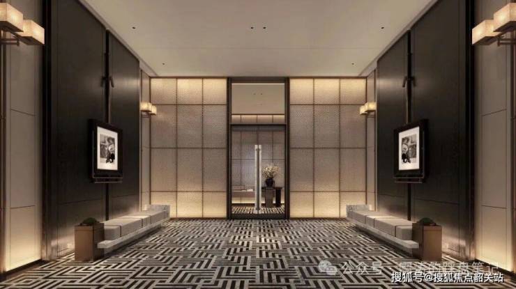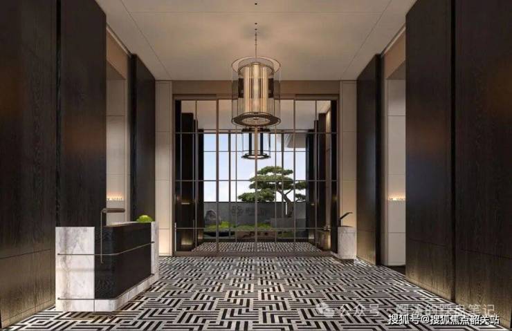 鎏光门庭入户大堂,采用豪宅海派手法设计,参考亚洲瑰丽酒店风格,打造“一步一景 一堂三景”五星级酒店式归家礼遇;材质上采用定制双色石材、巴西铂金钻奢石,并植入百年非遗西关手打铜工艺,彰显高级质感与格调。