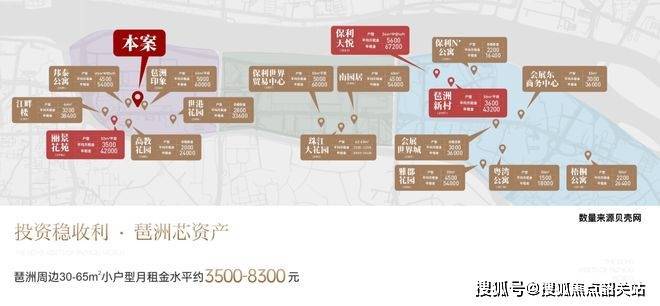 这个项目最吸引人的地方在于它的地段。琶洲作为广州三大CBD之一,和珠江新城、金融城一起形成“黄金三角”。这里定位人工智能、数字经济和总部经济集聚区,已经聚集了阿里巴巴、唯品会、腾讯、小米、YY、广东电网等一大批头部企业,未来还会继续引入更多巨头。周边总部大楼林立,从项目出发,走几百米就能到很多知名公司办公地点,生活和工作半径超级小。