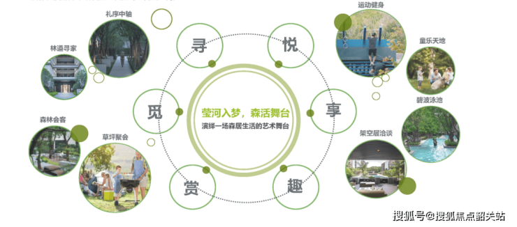 本案位于广州市增城区,整体结构以“寻、觅、赏、悦、享、趣”六种空间感受为节奏,展开八大生活模式。