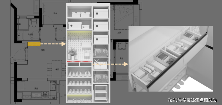 • 增加入户储藏空间,为小孩家庭提供婴儿车、行李箱等大件放置区域。