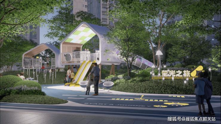 在项目视线最通透、空气流通最佳的区域,设置星光森林童乐天地,不仅为儿童提供无忧无虑的童乐时光,更为儿童提供最安全的监控看护服务。