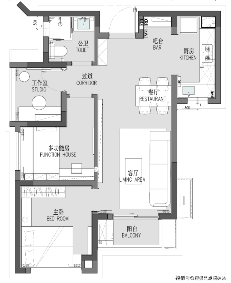 • “2+1”的空间设置,通过面积赠送,提高户内的使用空间;