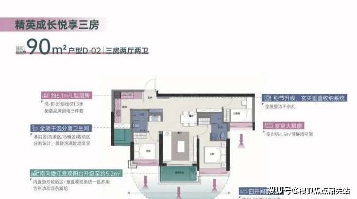 其中87㎡三房两卫设计实用,部分户型赠送面积达7.52㎡,使用率最高可达96%