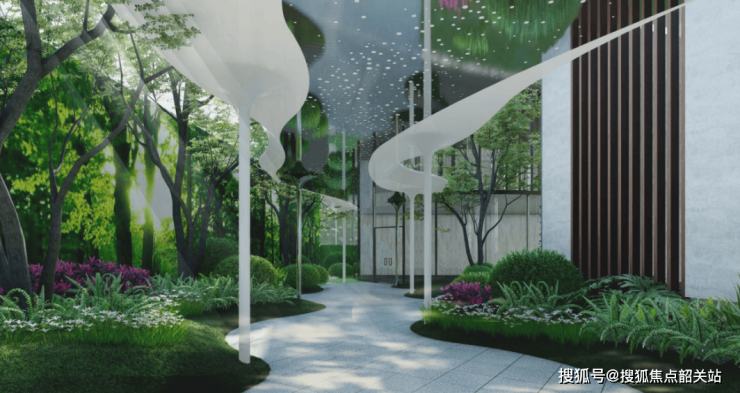 社区内打造了“两轴·三院·四景”现代东方园林,虽容积率为8.46,但30%的绿化率让居住环境多了一份舒适,8米挑高的入户大堂也提升了居住的仪式感。