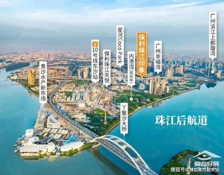 保利珠江印象坐落于广州市荔湾区东沙板块,位于白鹅潭沿江经济带核心区域,是广州滨江居住和经济发展的重要地段。东沙板块凭借临江优势,形成独特的景观资源和宜居环境,使项目具有天然的水岸景观价值。周边的城市功能配套齐全,商业、教育、医疗、休闲设施一应俱全,满足家庭日常生活及长远发展需求。