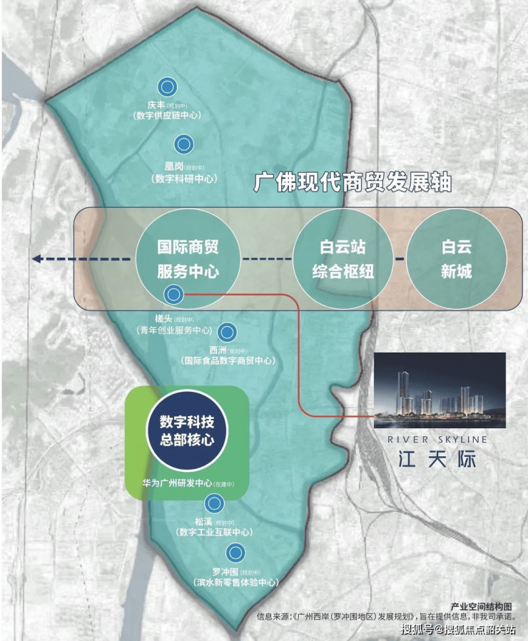 从区域规划来看,项目所处的湾区新岸(罗冲围)片区正迎来大规模城市改造,华为百亿智能汽车产业研发基地已落地距项目3km处,预计明年9月投入使用并进驻5000名高新人才,未来片区生产总值有望达600亿,占据白云区30%份额,为项目带来显著的产业赋能与价值提升。