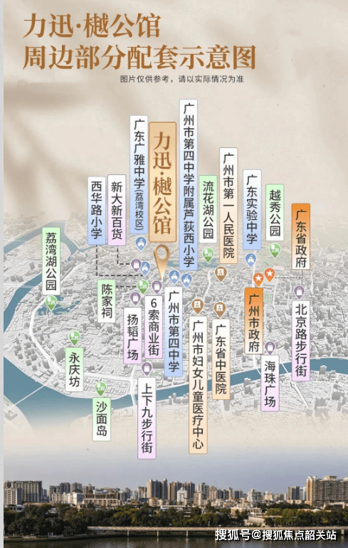 小学教育:步行 5 分钟可达四中附属芦荻西小学、西华路小学。四中附属芦荻西小学为荔湾区重点小学,隶属广州市第四中学教育集团,由四中直管,师资团队由四中骨干名师领衔,教学质量稳居荔湾前列,项目周边万科金色康苑等小区均对口该校,力迅樾公馆大概率划入该校招生范围;西华路小学纳入西关外国语教育集团管理,主打外语特色,教学口碑优异。