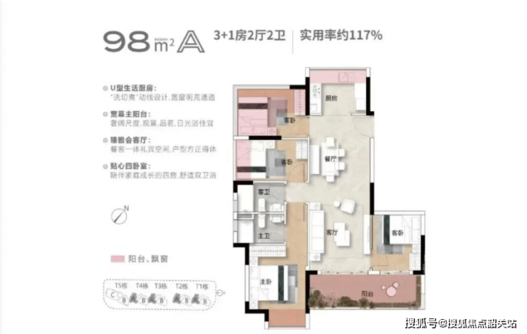 使用率红利:最高 118% 使用率,相当于 “买 98㎡享 113㎡、买 108㎡享 124㎡”,同等总价下实用面积远超同类产品,资产含金量更高。