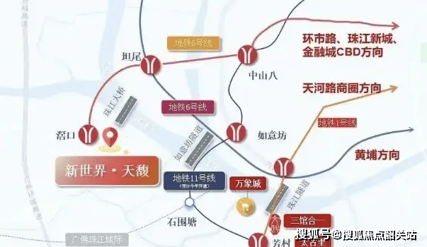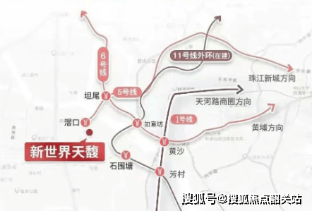 新世界天馥距离地铁5号线滘口站仅约400米,步行约6分钟即可抵达。乘坐5号线无需换乘,12站直达珠江新城,轻松连接天河CBD、金融城等核心就业区。此外,项目周边还可便捷换乘地铁6号线(坦尾站)和在建的11号线(环线),后者通车后将进一步强化区域轨道交通覆盖能力。