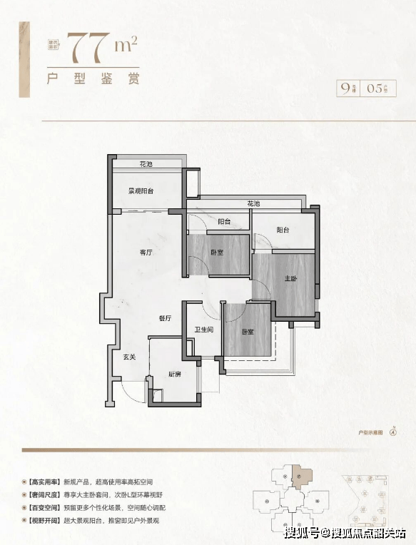 无敌视野景观,买77㎡相当于旧规90平方米的使用感,适合小家庭居住。