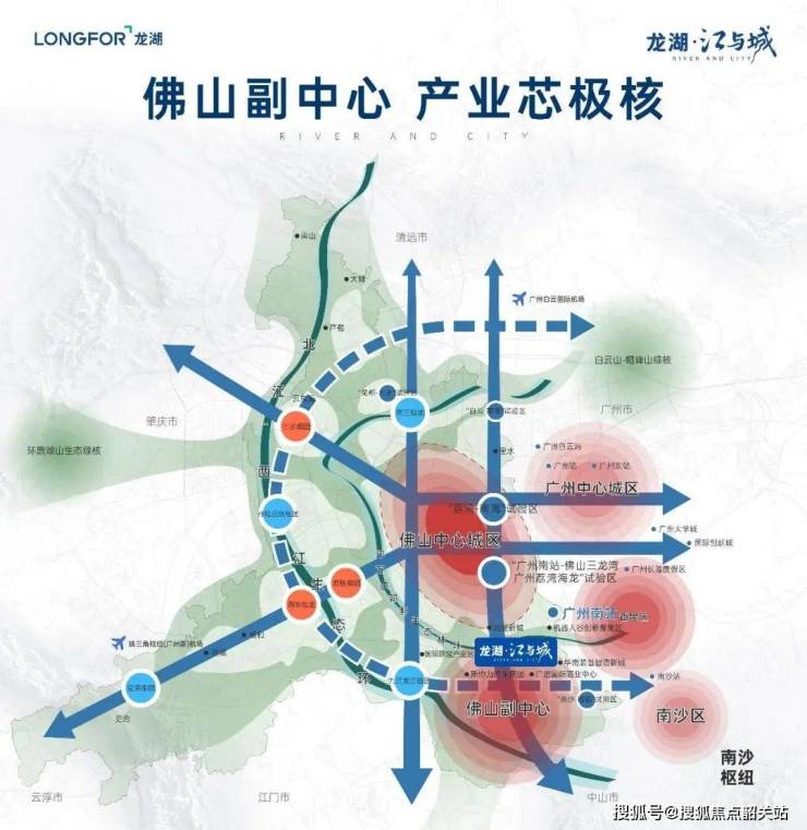 ①广佛4万亿超级城市群融合加速!在十四五规划助力下,“南部新兴发展轴”崛起!广佛交界依托地缘+地铁+产业先行成熟,自北向南形成“交界融合发展轴”,双轴交汇伦教,造就广佛新一代价值极核!项目执掌双轴红利,标定广佛置业新焦点!