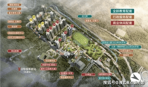 交通配套:地铁8号线+白云站TOD黄金枢纽,步行400米直达亭岗站,8号线可换乘13条地铁线路,3站直达白云站(亚洲最大综合交通枢纽),接驳广深港高铁。社区配备公交首末站,3条公交线路直达白云机场。
