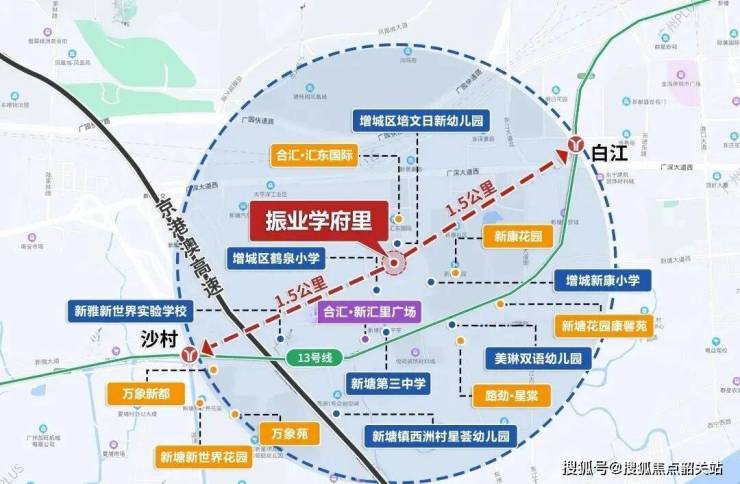项目600米范围内就分布有新康小学、鹤泉小学、新塘三中以及多所幼儿园。