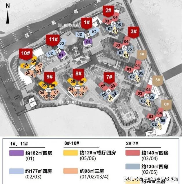 户型:98㎡三房两卫(南北通透)、128㎡四房两卫(横厅设计)、142㎡四房三卫(双主套);