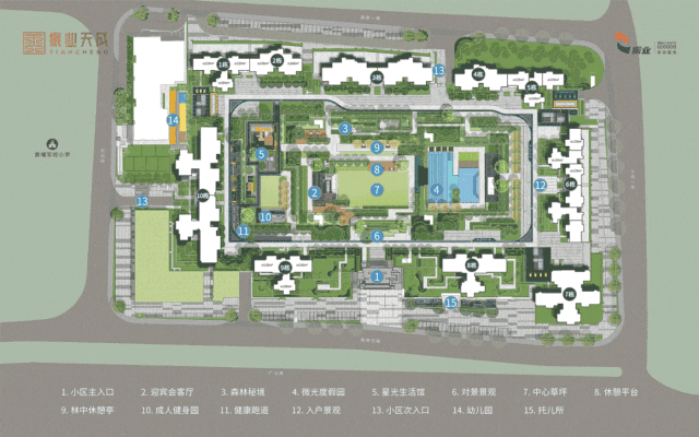 小区内部设计强调人与自然的和谐共生,拥有约2万方中央园林,包括健身园、健康跑道、儿童乐园等八大全龄活动空间,相当于2.8个国际标准足球场。内部还规划有休闲泳池、全龄健身区、环形跑道等,满足家庭所有成员的需求。