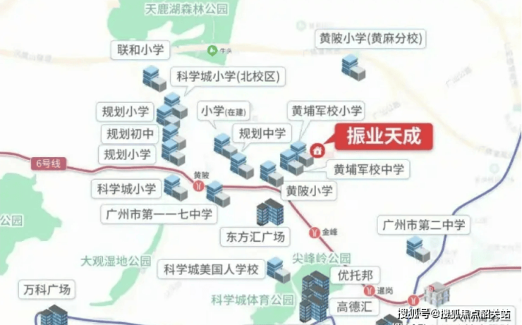 振业天成所在的黄陂板块教育资源丰富,特别是省一级黄埔军校小学(现为广附中核心学校)就在项目附近。此外,项目200米范围内还有至少4所学校,涵盖从幼儿园到中学各个阶段,为子女教育提供了有力保障。