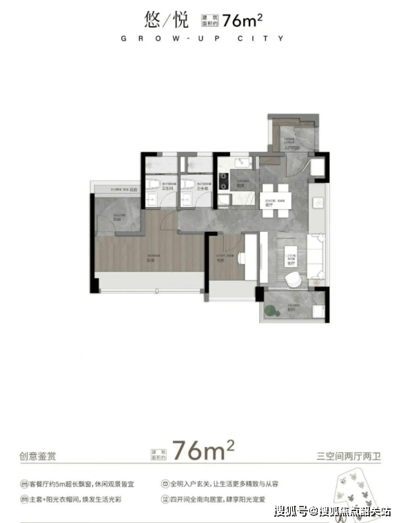 户型设计合理,全南向设计,高得房率,使居住空间更加舒适。