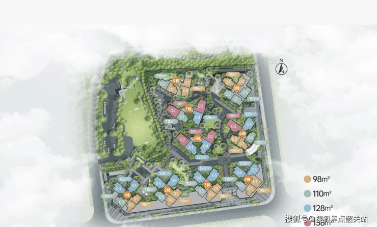 项目整体规划39栋建筑,总户数5900户,配置7080个车位,车位配比充足,可充分满足业主停车需求。其中三期作为核心推售板块,规划户数2600户,车位配比达1:1.2,物业费标准为3.5元/㎡·月,容积率2.81,低于区域同类型项目,打造低密舒适的居住环境。三期目前主推2号楼(11层),在售户型涵盖建面约98-128㎡,楼栋设计以全南向为主,楼高分为9层、11层、15层,梯户比为2梯5户,保障业主出行便捷性。项目在售均价约3.2-3.5万/㎡,不同户型价格区间清晰,其中98㎡户型总价约315-335万,110㎡户型总价约360-370万,128㎡户型总价约430-450万,交楼时间集中在2026年12月至2027年3月。此外,项目一期容积率仅2.1,绿化率约35%,同样以9-11层小高层为主,梯户比2梯5户,在售产品涵盖建面约95-128㎡,均价约3.6-3.9万/㎡;二期剩余少量尾货,99㎡户型总价约297-310万,同时即将加推1号地5号楼(共45户),均价约3.9-4.2万/㎡,预计月底取证,交楼时间为2025年9月至2026年12月。项目拿地时间为2023年7月,整体交付节奏有序,部分楼栋可实现准现房交付,降低业主置业风险。