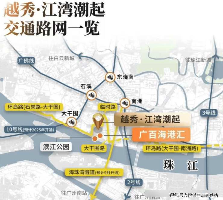 自驾:项目北侧为一横路,南侧为环岛路,临近广州环城高速。环岛路作为海珠的重点建设项目,一旦贯通,将激活海珠“产-商-居”内循环,加强海珠各板块之间的联系。此外,海珠湾隧道预计今年开通,通车后开车到广州南站仅需约15分钟。