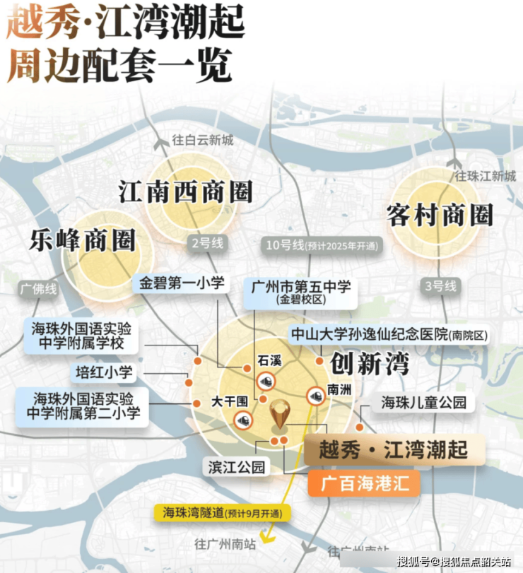 商业综合体:旁边的广百海港城已于2023年12月12日封顶,预计今年年底正式开业,集商务办公、休闲购物、酒店于一体,计划引进奢侈品牌旗舰店、生态写字楼、五星级酒店等业态。