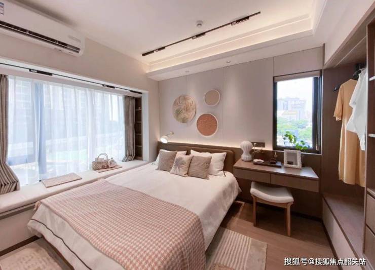 又如,所有户型都带套房,即使最小83㎡,主卧也有独立卫生间,既实用还不多占面积。| 83㎡主卧样板房实景图