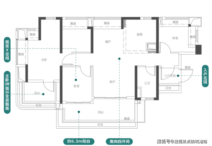 南向四开间加上餐厅直面飘窗,不仅采光好,而且南北通透。