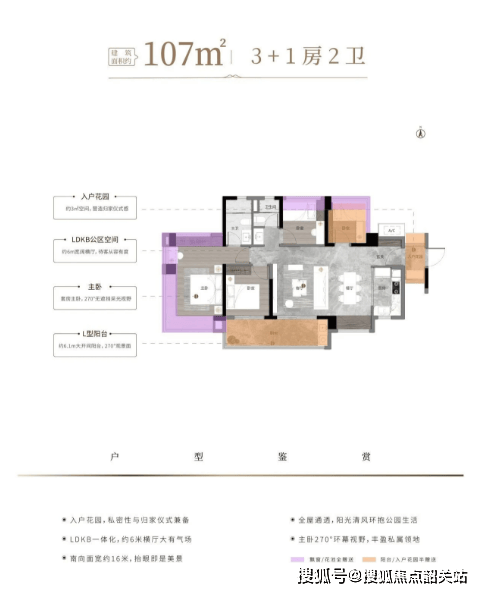 建面约107㎡四房两厅两卫:阔绰大横厅,改善优选