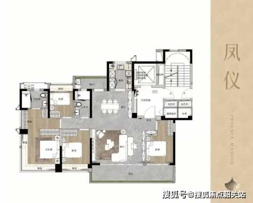 凤凰于飛总占地约5.7万㎡,总建筑面积约19万㎡,规划住宅568户,车位860个,绿化率约32%,采用2T3/2T4高层及2T2板楼组合,梯户比合理,提升居住舒适度。社区围合布局,划定宁静与繁华边界,打造纯改善低密南向社区。建筑规划充分结合光照与景观,户户全南向,三至四房户型设计,建面约108~144㎡,均为新规产品,实用率高达100%。配套包括托儿所、约2000㎡文化馆、肉菜市场,以及社区内部约52米U型高定酒店式门府,彰显住宅品质与人文气息,是花都区府板块近年罕见的改善型住宅项目。