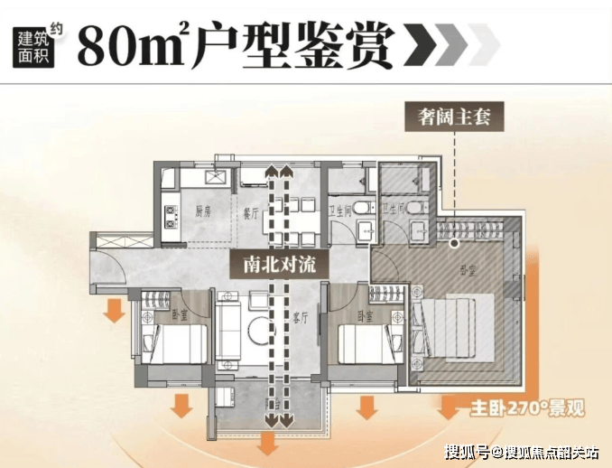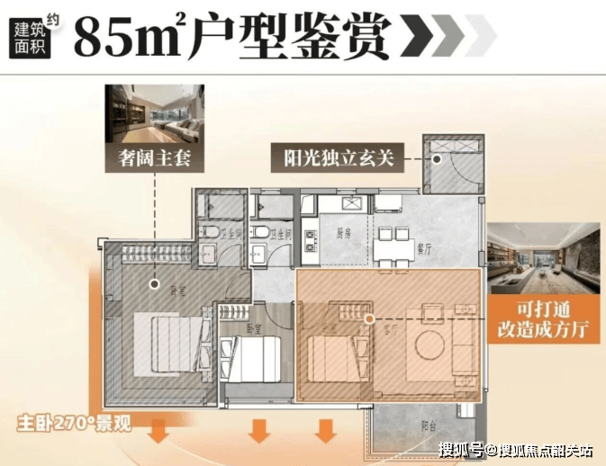 85㎡:两房至三房,灵活布局;