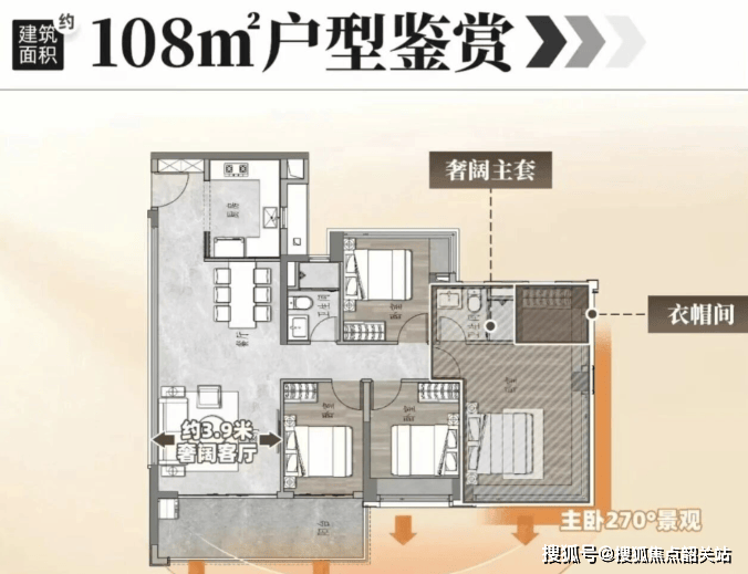 108㎡:三房设计,满足家庭居住需求;