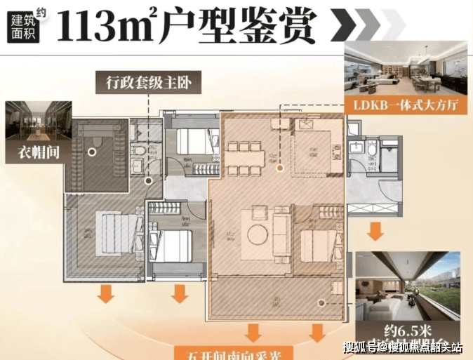 113㎡:大三房设计,一线江景,享受豪华居住体验。