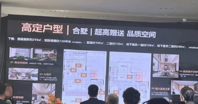 上叠产品报建面积约220㎡,实际得房建面约730㎡,得房率高达331%,包括二层通高门厅、三层、四层、屋面层以及地下室空间。下叠产品报建面积约210㎡,实际得房建面约720㎡(不含南庭院),得房率约为342%。每户均设有超大花园、独栋别墅级阳台挑高等特色,满足不同住户的需求。