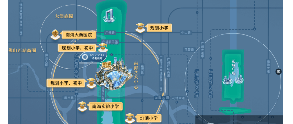 保利维塔虽为豪宅,却具备优越的通勤效率。项目规划预留地铁衔接出入口,未来可无缝接驳广州地铁28号线(规划中)与佛山6号线。其中,28号线将在邻近的“南海之眼”设站,届时2站直达广州白鹅潭CBD,5站抵达琶洲电商总部区,高效融入广佛1小时生活圈。现阶段,驾车10分钟内可达广佛线金融高新区站、千灯湖商圈及佛山一环高速入口,30分钟畅达广州珠江新城。对于在广佛双城核心商务区工作的高净值人群而言,每日可节省大量通勤时间,真正实现“多睡十分钟”的从容生活节奏。