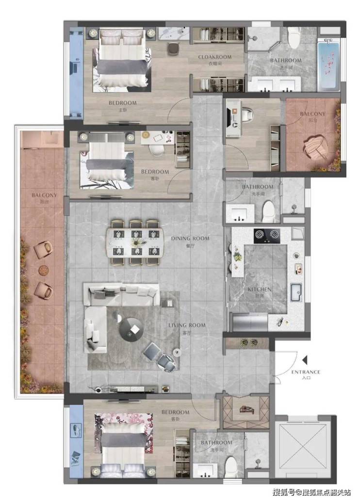 恒基·学苑壹号提供多种面积段户型选择,从105㎡至220㎡不等,包括: