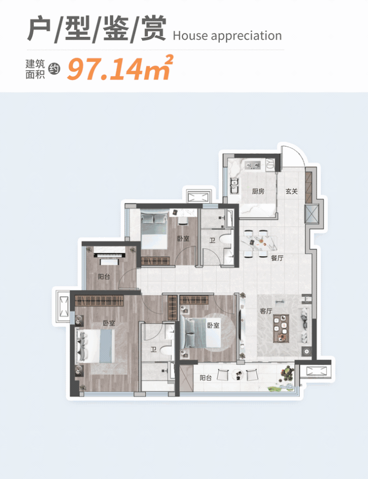 项目支持多种户型实地参观,包括建面约86-103㎡的三房至四房户型,均采用南北通透、宽阔阳台及高得房率设计。预约看房流程降低购房者行动门槛,使其在有限时间内完成对社区环境、户型及设施的全面评估,为理性决策提供可靠依据。