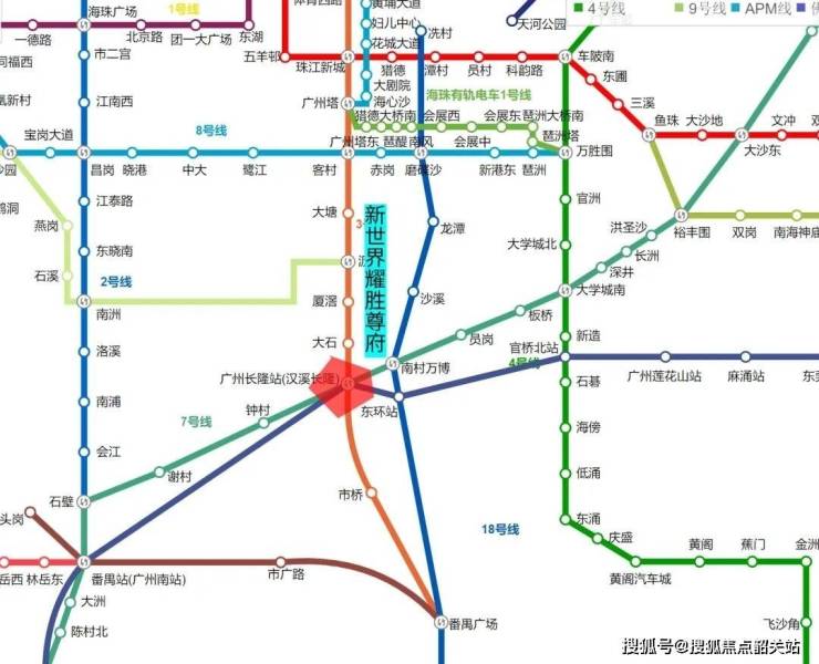 耀胜新世界广场·耀胜尊府坐落于广州番禺区汉溪大道与汉兴西路交汇处,地处长隆与万博双CBD交汇核心,是广州南拓战略的关键板块。项目无缝衔接地铁3号线、7号线及佛莞城际,15分钟直达珠江新城,30分钟覆盖南沙自贸区、佛山核心区及东莞主城,日均客流量超50万人次,是广佛同城化与湾区产城融合的核心节点。
