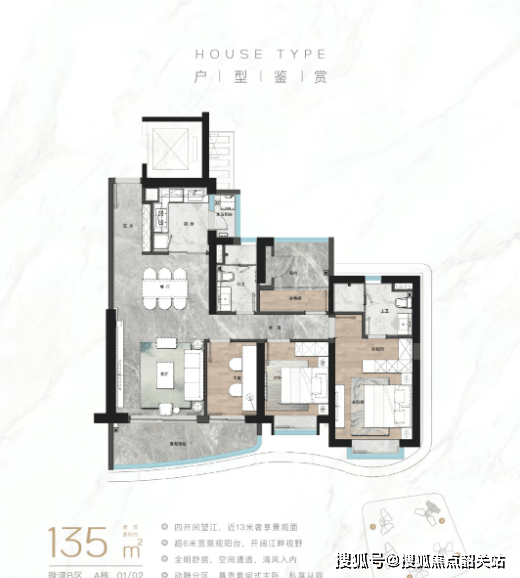 135㎡王牌东南向滨江四房:宽敞明亮,享有绝佳的江景视野,适合改善型住户。