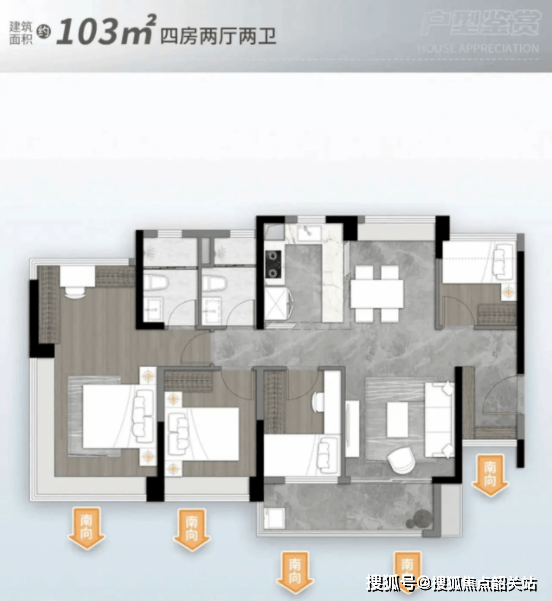 6. 103㎡四房两厅两卫:总价约290-310万,单价约28200-30100元/㎡;