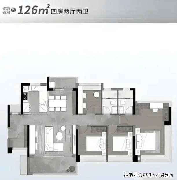 126㎡四房两厅两卫是大家庭的优选户型,根据政府备案数据,该户型总价300万起,单价约23800-25400元/㎡,户型方正通透,预留了灵活改造空间,能满足多代同堂的居住需求,适合人口较多的大家庭或追求极致居住舒适度的家庭。