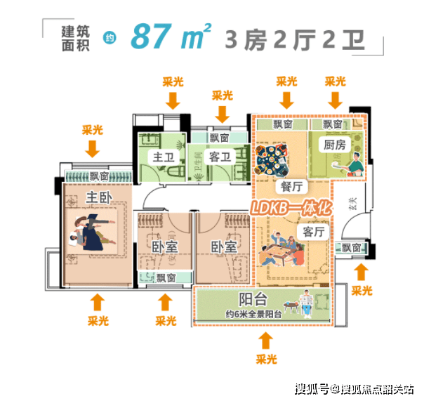 LDKB亲子一体化设计是该户型的核心亮点,即将客厅、餐厅、厨房、阳台连为一体,形成一个开阔的公共空间,让家长在厨房忙碌时也能照料孩子,避免孩子独自玩耍出现安全隐患,同时也能增进家人之间的互动,让家庭氛围更加融洽。这种设计打破了传统户型的空间隔阂,让公共空间更加开阔,日常休闲、亲子互动都十分合适。